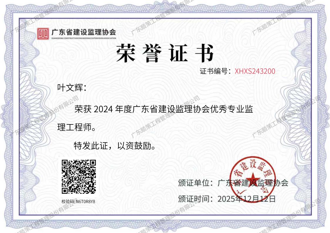 【2024年度广东省建设监理协会优秀专业监理工程师】